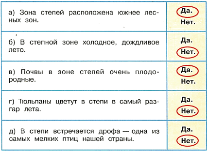 2. Наш любознательный Попугай кое – что знает о степях. Вот некоторые из его утверждений. Верны ли они? Обведи "Да" или "Нет". Если нет, исправь ошибки (устно).