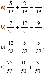 При сложении и вычитании дробей с одинаковыми знаменателями опираемся на следующие правила: