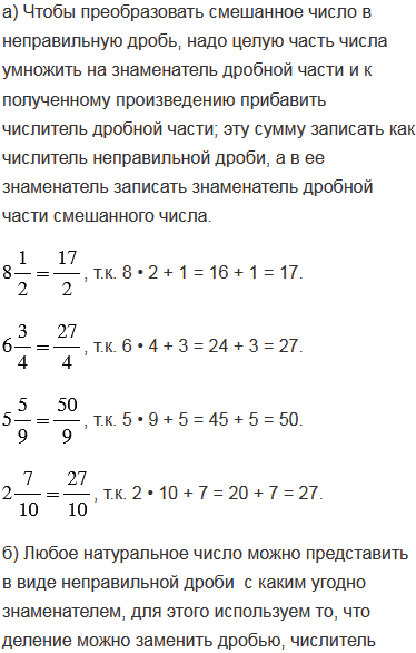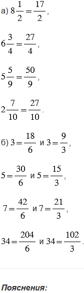 б) Представьте в виде неправильной дроби со знаменателями 6 и 3 числа 3, 5, 7 и 34.