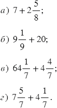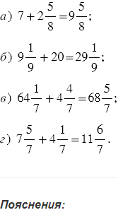 При сложении (вычитании) смешанных чисел нужно целые части сложить (вычесть) отдельно и дробные части тоже отдельно.