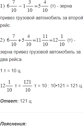 В первый рейс грузовой автомобиль привёз на элеватор т зерна, что на т больше, чем он привёз во второй рейс. Сколько тонн зерна привез грузовой автомобиль за два рейса? Выразите ответ в центнерах.