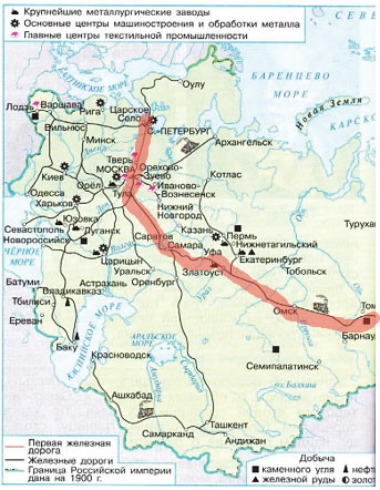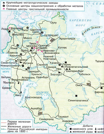 1. Что можно узнать по карте (с. 92 – 93, с. 120 – 121) об экономике России в конце XIX века?