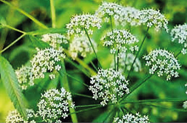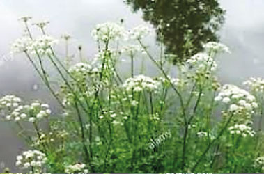 Цикута – многолетнее травянистое растение высотой до 1 – 1,2 м. Стебель гладкий и ветвистый. Мелкие белые цветки собраны в двойные зонтики с 10 – 15 главными лучами.
