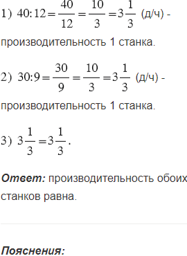 Чтобы найти производительность станка, надо число деталей разделить на время, за которое они изготовлены.