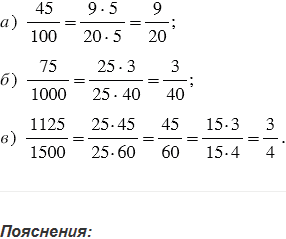 Деление числителя и знаменателя на их общий делитель, отличный от единицы, называют сокращением дроби.