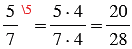 Определяем на какое число надо умножить знаменатель (число 7), чтобы получилось 28: