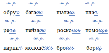 На конце существительных женского рода после шипящих пишется мягкий знак. На конце существительных мужского рода после шипящих мягкий знак не пишется.