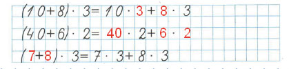 Чтобы умножить сумму на число, можно вычислить сумму и умножить её на число или умножить на число каждое слагаемое и полученные результаты сложить.