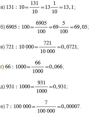 Обратите внимание: если в числителе обыкновенной стоит меньше цифр, чем нулей в знаменателе этой дроби, то при записи десятичной дроби после запятой добавляют нули, а за ними пишут цифры из числителя, причем нулей добавляют столько, чтобы общее количество цифр, записанных после запятой, равнялось количеству нулей в знаменателе соответствующей обыкновенной дроби.