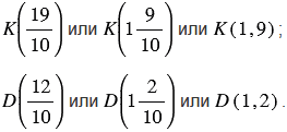 Обратите внимание, что все координаты в знаменателе будут иметь число 10, а числа со знаменателями 10, 100, 1000 и т.д. условились записывать без знаменателя. Сначала пишут целую часть, а потом числитель дробной части. Целую часть отделяют от дробной части запятой. При этом после запятой числитель дробной части должен иметь столько же цифр, сколько нулей в знаменателе. Следовательно,