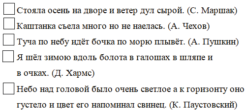 Сложные предложения: Туча небо кроет, солнце не блестит. Ветер в поле воет, дождик моросит.