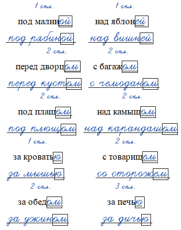 • Подберите другие имена существительные того же склонения и запишите их в том же падеже.
