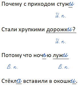 • Найдите имена существительные во множественном числе и укажите над ними падеж.