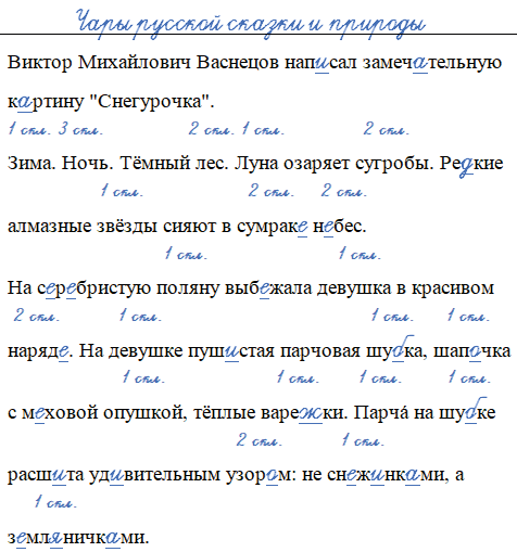 В лучистом свете, словно ж_вые, др_жат мал_нькие ели, тр_пещет тонкая берё_ка. Мерцают в глубин_ леса, словно св_тлячки, огни д_р_венских изб.
