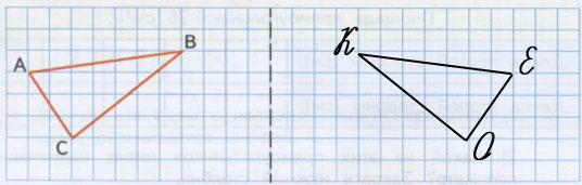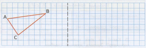 11. Начерти треугольник, симметричный треугольнику АВС относительно заданной оси симметрии. Обозначь его буквами КЕО. Будут ли равными площади этих двух треугольников? Подчеркни ответ: ДА, НЕТ.