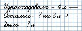 10. После того как бабушка сделала творог из 4 л молока, у неё осталось на 8 л молока больше, чем пошло на творог. Сколько литров молока было у бабушки сначала?