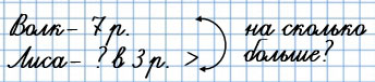 19. Волк и Лиса ловили рыбу. Волк поймал 7 рыбок, а Лиса - в 3 раза больше. На сколько больше рыбок поймала Лиса, чем Волк?