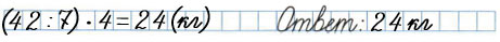 18. За 7 дней в киоске "Свежая выпечка" израсходовали 42 кг муки. Сколько килограммов муки израсходовали за 4 дня, если каждый день муку расходовали поровну?