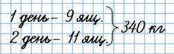 20. В первый день в киоске продали 9 одинаковых по массе ящиков винограда, а во второй - 11 таких же ящиков. Сколько килограммов винограда продали в первый день, если всего за два дня продали 340 кг винограда?