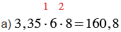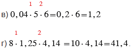 2) в полученном произведении отделить запятой справа столько цифр, сколько их стоит после запятой у умножаемой дроби.