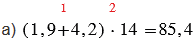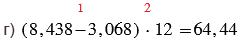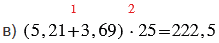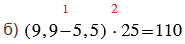 Порядок выполнения действий выбираем согласно следующему правилу: если в выражении есть скобки, то сначала выполняют действия в скобках, а затем за скобками. Красные числа, стоящие сверху над действиями, показывают в каком порядке нужно выполнять действия.