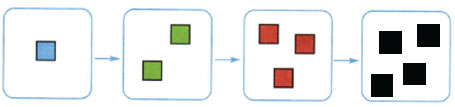 Значит, ты можешь закрасить 4 фигуры любым цветом, кроме голубого, зелёного и красного.