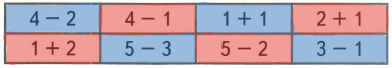 Если на карточке пример с ответом 3, раскрась её красным цветом, если 2 - синим.