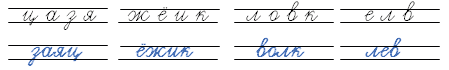 • Собери из данных ниже букв слова-названия животных. Запиши эти слова. Проверь себя.