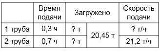 Скорость подачи второй трубы 21,2 т/ч, значит, за 0,7 ч работы ею загружено:
