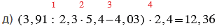 д) (3,91 : 2,3 • 5,4 - 4,03) • 2,4;