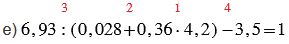 е) 6,93 : (0,028 + 0,36 • 4,2) - 3,5.