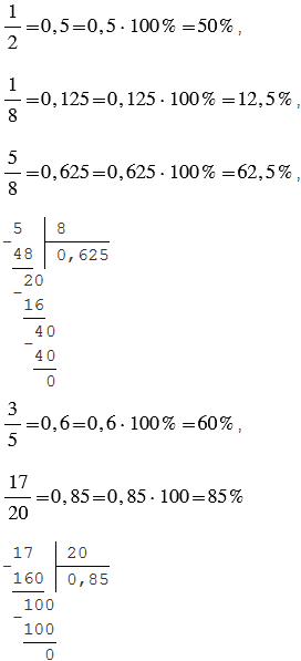 Чтобы перевести десятичную дробь в проценты нужно эту десятичную дробь умножить на 100 и к результату приписать знак %.