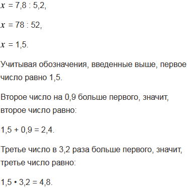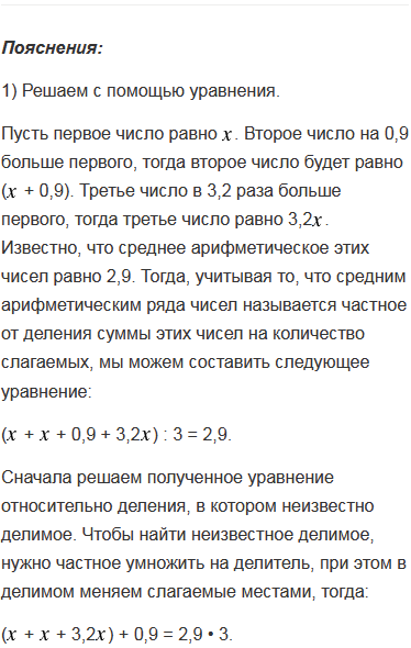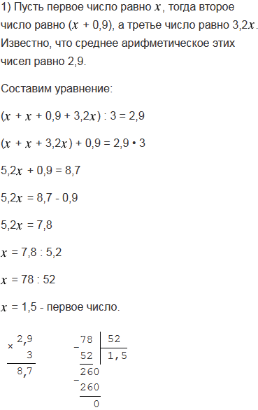1) Среднее арифметическое трех чисел равно 2,9. Найдите эти числа, если третье число в 3,2 раза больше первого, а второе на 0,9 больше первого.