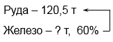 Железо составляет 60% добытой руды, тогда, масса железа, которое получится из 120,5 т добытой руды, равна: