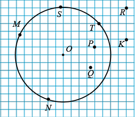Какие из отмеченных точек лежат вне окружности? Какие из отмеченных точек лежат в круге?