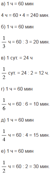 б) Нам нужно узнать, сколько секунд в  трети часа, то есть в ч. Знаменатель дроби показывает, что 1 ч = 60 мин нужно разделить на 3 доли (равные части), получим, что одна такая доля, то есть