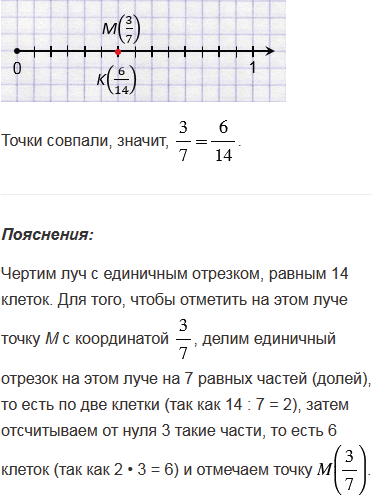 На координатном луче с единичным отрезком, равным 14 клеткам, отметьте точки . Объясните построение.