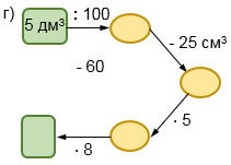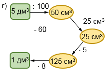 г) 1) 5дм3 : 100 = 5000см3 : 100 = 50см3;