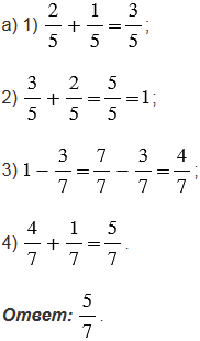 2) чтобы найти сумму двух дробей с одинаковыми знаменателями, нужно сложить их числители, а знаменатель оставить прежним;