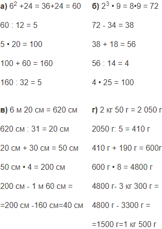 в) 6 м 20 см : 31 + 30 см • 4 - 1 м 60 см ? |