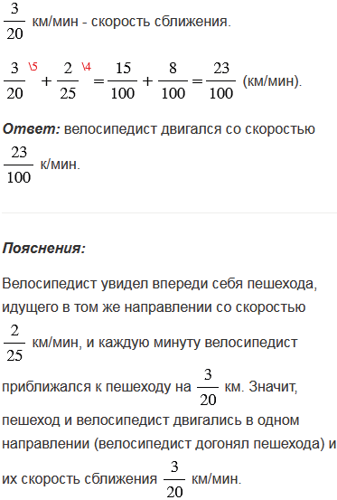 км/мин. С какой скоростью двигался велосипедист, если каждую минуту он приближался к пешеходу на