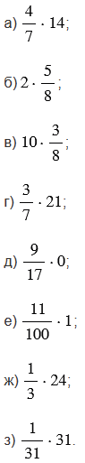 Чтобы умножить обыкновенную дробь на натуральное число, нужно ее числитель умножить на это число, а знаменатель оставить без изменения.