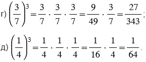 При возведении в степень, дробь нужно умножить саму на себя, столько раз какова степень дроби, а далее выполнять умножение дробей согласно правилу.