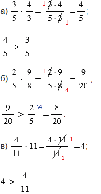 Сравните полученное произведение с первым множителем. Как изменяется число при умножении его на неправильную дробь - увеличивается или уменьшается?