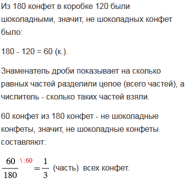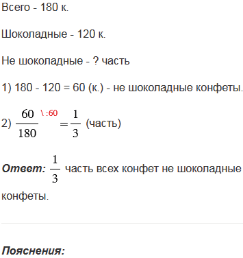 Из 180 конфет в коробке 120 были шоколадными. Какую часть всех конфет составляли не шоколадные конфеты?