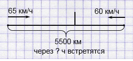 Расстояние от Москвы до Улан-Удэ (столица Республики Бурятии) равно 5500 км. Из Москвы и Улан-Удэ одновременно навстречу друг другу отправились два поезда. Через сколько часов они встретятся, если средняя скорость их движения равна 60 км/ч и 65 км/ч соответственно?