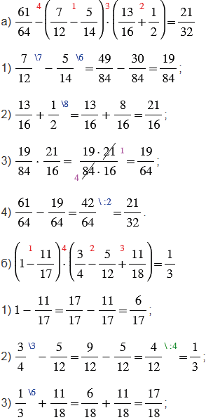 Красные числа, стоящие сверху над действиями, показывают в каком порядке нужно выполнять действия.