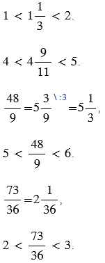 Смешанное число располагается между натуральными числами, одно из которых обозначает его целую часть, а другое следует за целой частью в натуральном ряду.