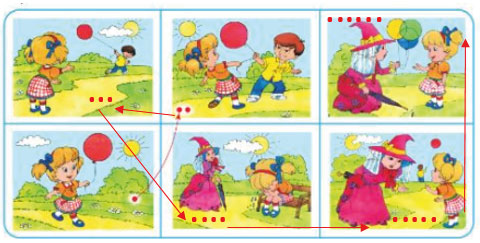 Девочка гуляла с красным шариков в руке. Мимо пробегавший мальчик, стал отбирать шарик. Он выхватил его и убежал. Девочка расплакалась. Проходящая мимо фея, выслушала девочку. Она подарила ей 3 воздушных шарика. Девочка поблагодарила фею.