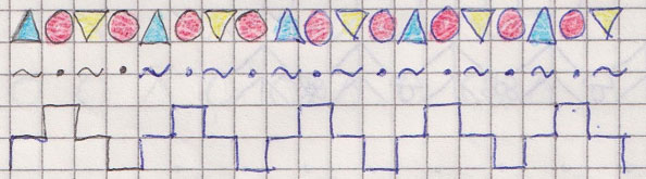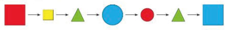 6. Нарисуй в тетради цепочку из шести фигур, изменяя одновременно цвет, форму и размер.